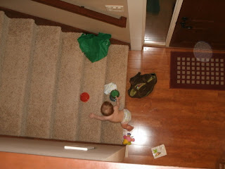 Eating....still pretty well. She is starting to get slightly picky about some things and is able to show us what she likes and doesn't like (usually by throwing it on the floor!). Some days she loves peas, others she hates them; the same is true for cheese and strawberries. Her favorites are still green beans, bananas, and any bread and cereal. Her portions are getting bigger, and I sometimes feel like she eats as much as I do! Maybe those "big-eater" days make up for the "hunger-strike evenings," a new trend we saw a few nights this past week.